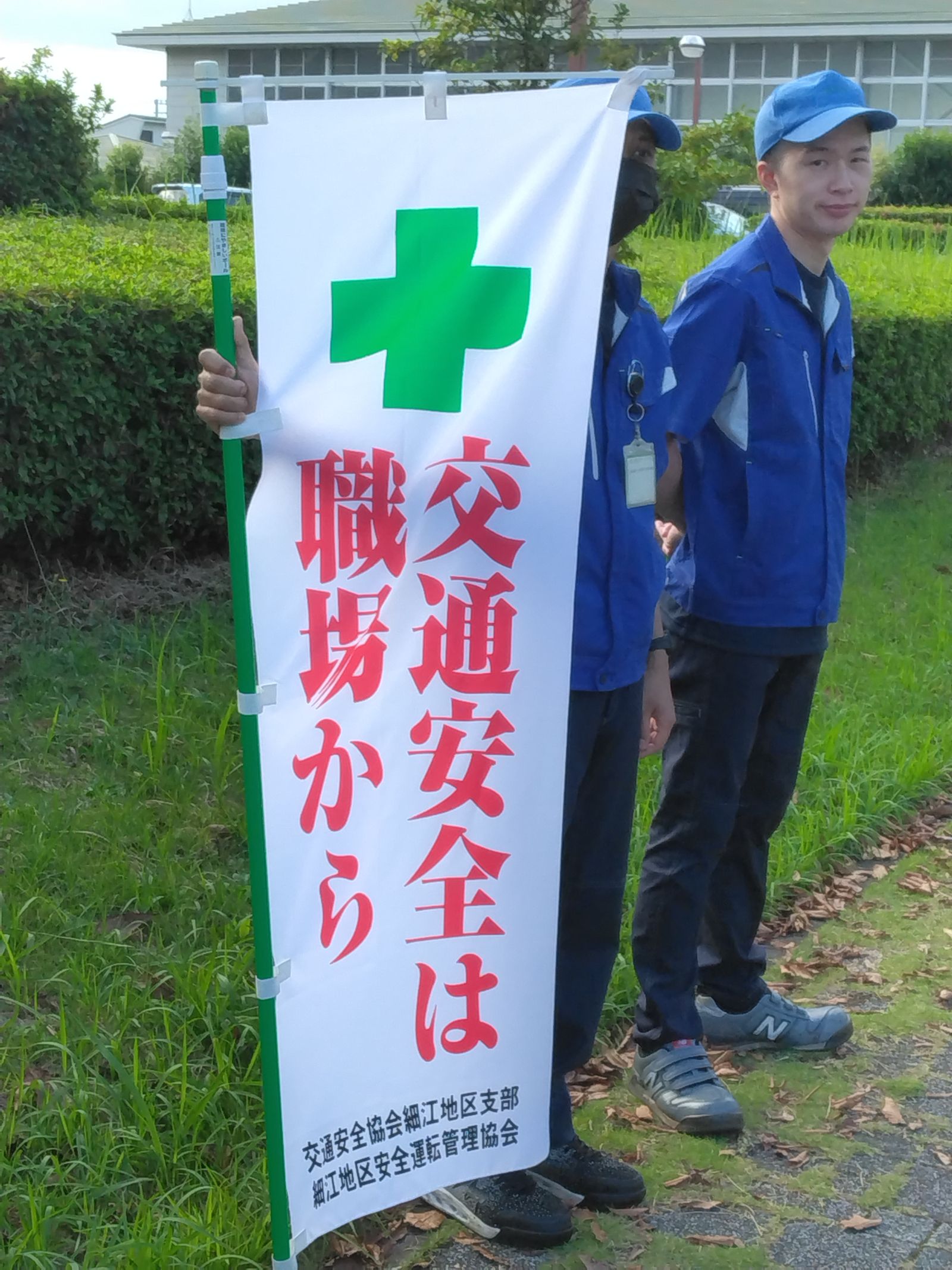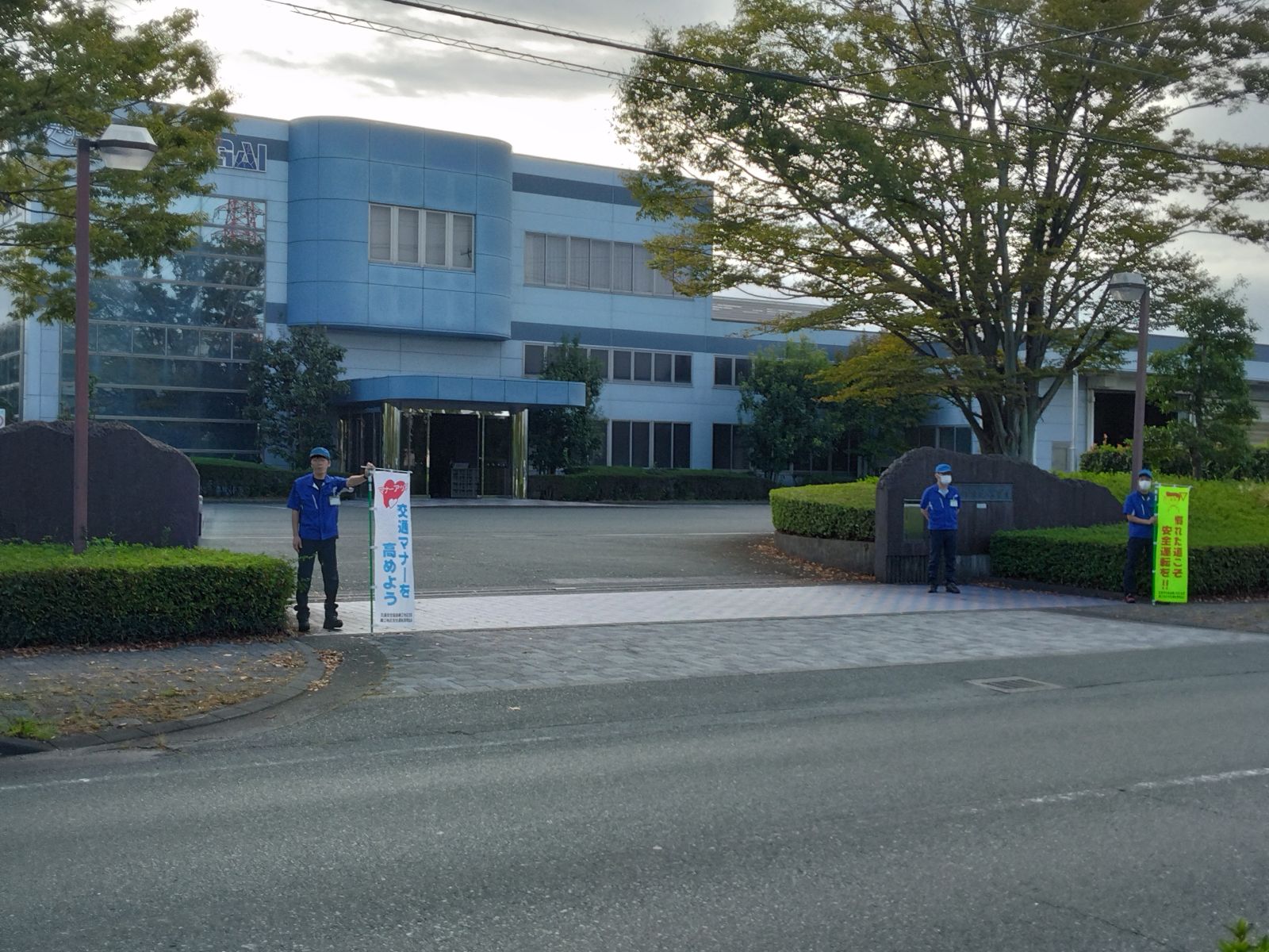 写真に写っている場所は弊社の正門前の道路になりますが、ちょうど近くに交差点があり緩やかなカーブに続いていること、実施した時間が朝7:30ということで交通量が多かったのですが、のぼり旗に気づき、少しでも「交通安全」への触発に繋がり気持ちが塞がるような事故が減ることを切に願っております。